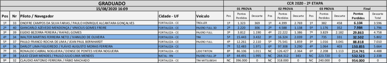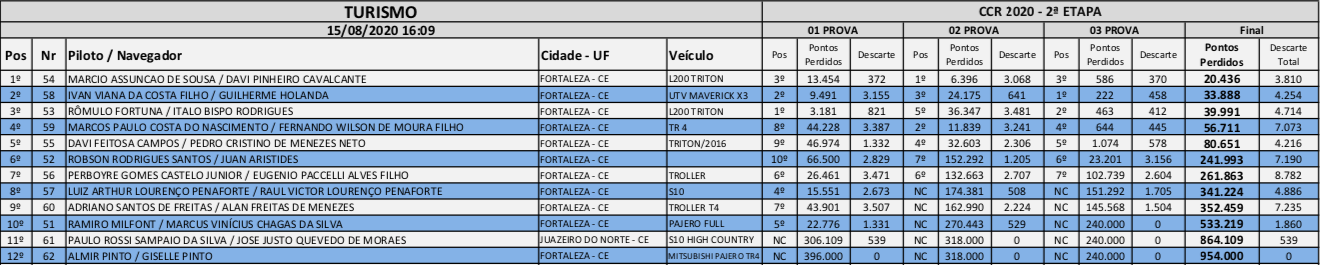 A dupla pai e filho Giancarlo Mendonça e Vinicius Gomes, foi muito bem, terminando a prova na segunda colocação, à frente de muitos "feras" do rally de regularidade, com apenas 7.984 pontos perdidos. Walter Martins e Ivanildo de Oliveira, obtiveram a quarta posição com 32.502 pontos perdidos.
